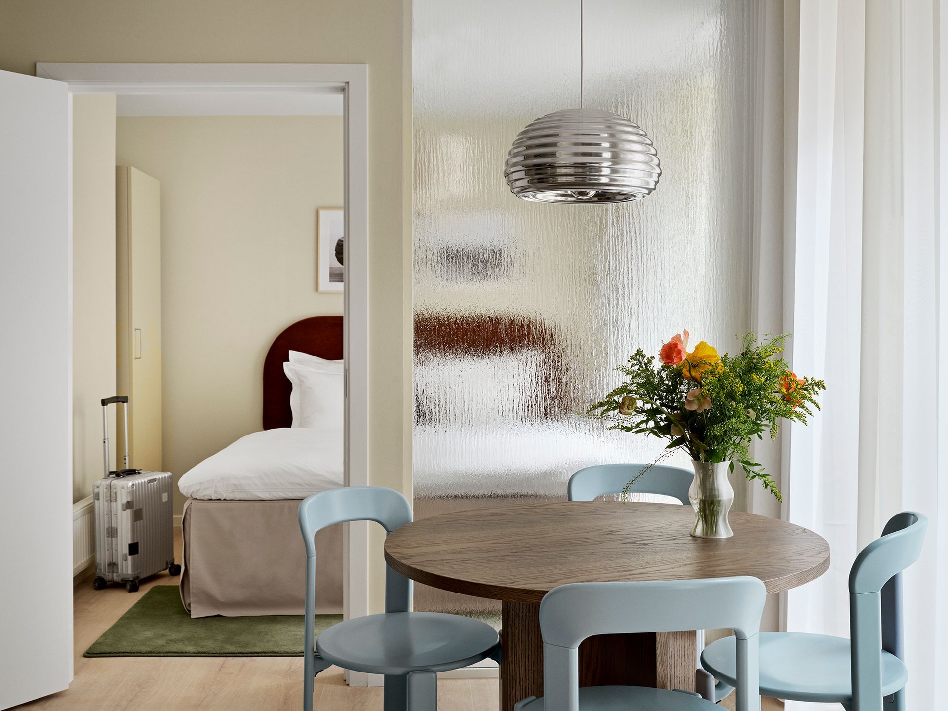 This renovated building, located at what was once one of the main gates to the city, has been reinforced with sturdy windows to quiet the buzzing frenzy of Nørreport square, where it’s situated. The interior combines soft features and elegant decor, restoring the regal aura that the building once had.
